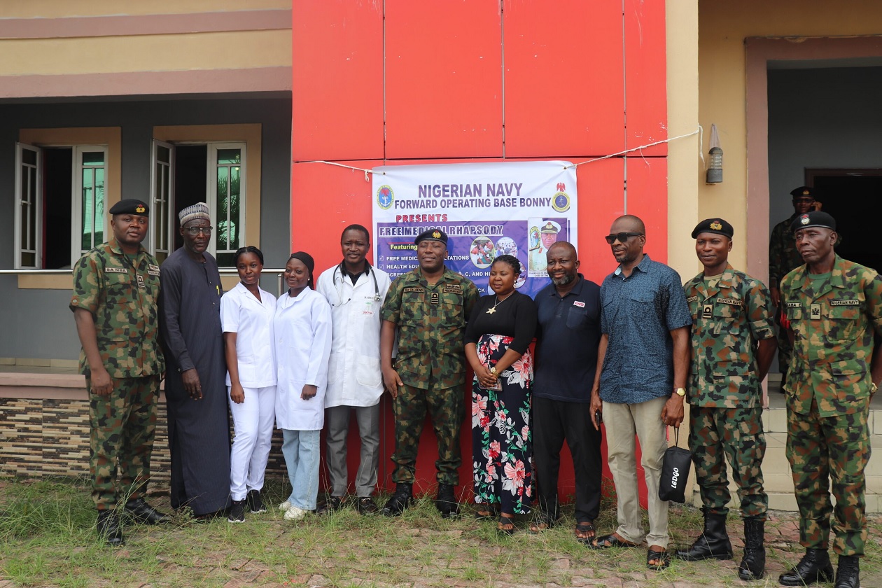 “Nigerian Navy Forward Operating Base Bonny has also keyed into these activities and has decided to, in our normal way of giving back to the public, conduct a modest medical rhapsody, which is aimed at providing medical care to our host community and in a bid to remind them that we’re with them and that we’re partners in progress and we will do all within our powers to ensure that the livelihood of the people on the island is made better in our own small way.”