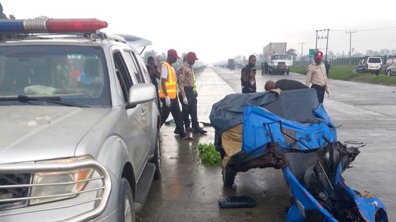 Tragedy struck on Saturday, July 12, 2025 when a trailer crushed to death a tricycle driver and one of his passengers along the East-West Road at Alode Community in Eleme Local Government Area of Rivers State.