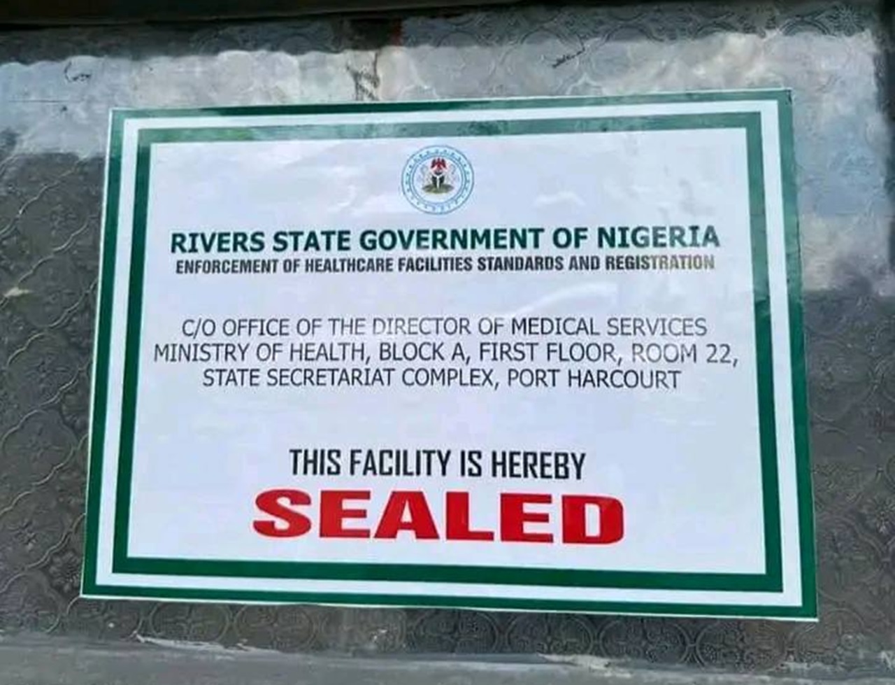 The Director of Medical Services in the State Ministry of Health, Vincent Wachukwu announced the revocation, shutdown of the facility and subsequently ordered the immediate closure and sealing off of the facility.