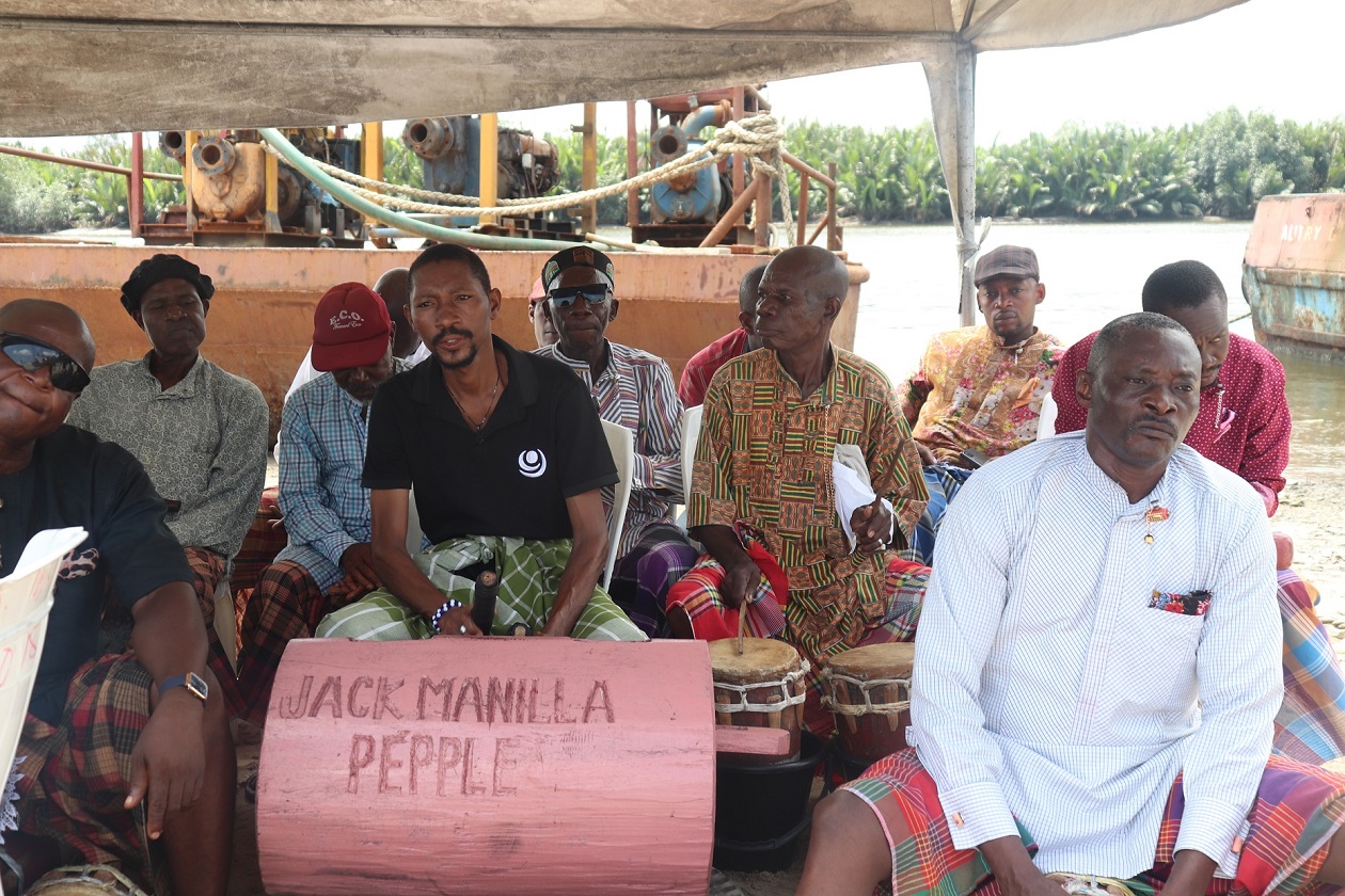 Irked by this development, members of the Olom Abalama (Oguede) Community comprising the men, women, youths and children have embarked on a sit-out, drumming, singing, and dancing with canopies mounted at the Coconut Estate waterfront adjacent to the sand dump.