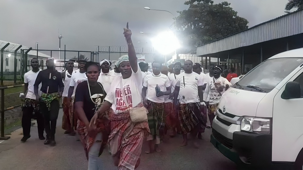 Youths of Finima Community defied the early morning heavy downpour, which continued until late afternoon, to barricade the H Block gate, preventing entry and exit of staff.