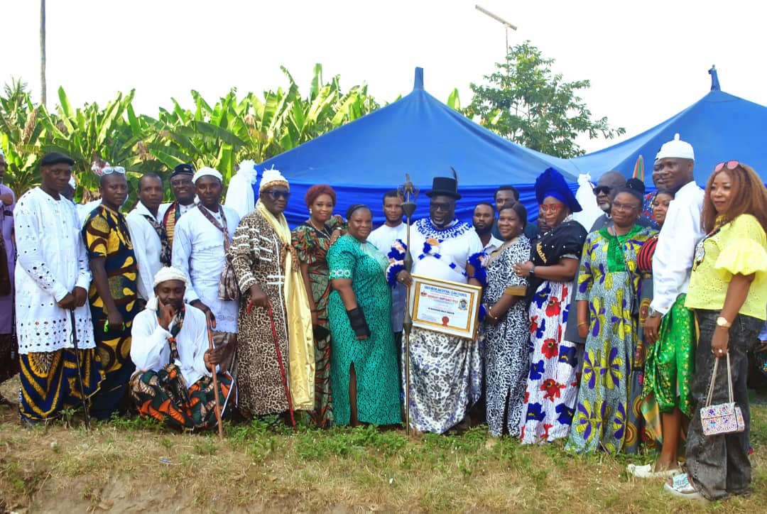 The conferment, which took place Friday, December 26, 2025 at the Ukei Mbom Community Square, was performed by the Clan Head of Ukei Mbom Ancestral Clan, His Royal Highness, Etinyin Okon Edet Ekpenyong Iba III.