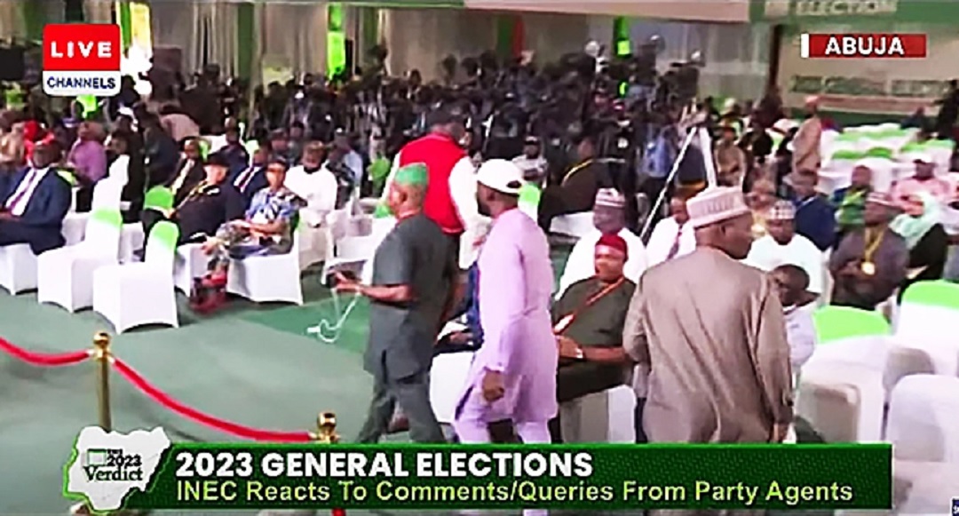 As anger and skepticism grows over the authenticity of the results being announced by the Independent National Electoral Commission (INEC), some political parties have staged a walkout at the National Collation Centre, Abuja.
