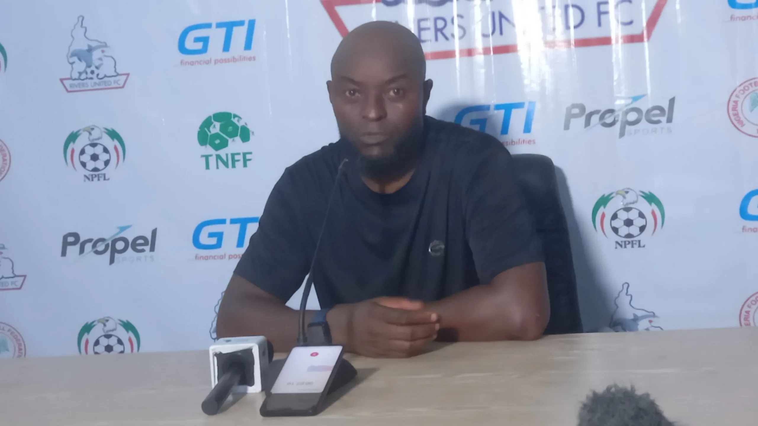 Finidi George reacts as Rivers United swap 1–0 struggles for flood of goals