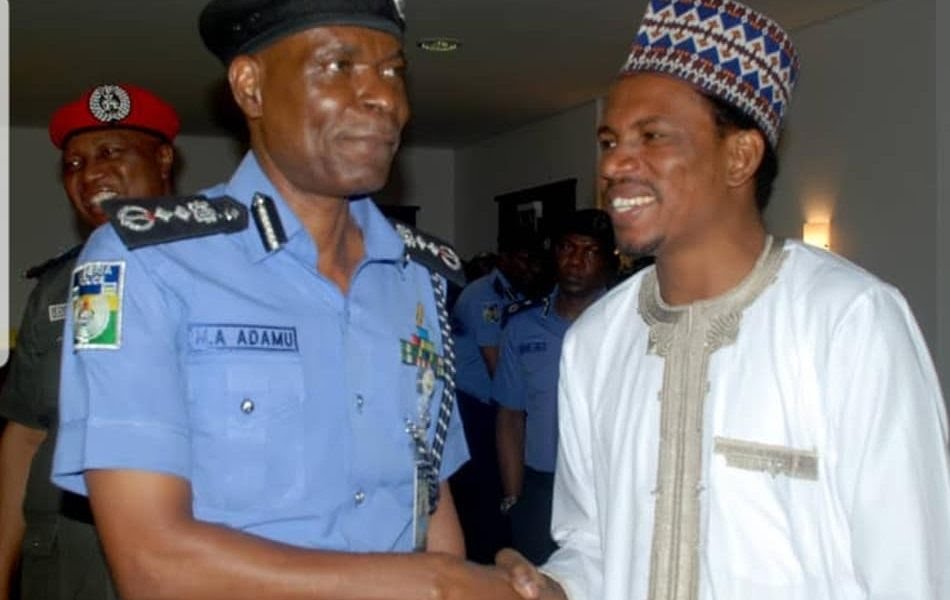 Elisha Abbo in a handshake with Inspector General of Police, Muhammad Adamu.