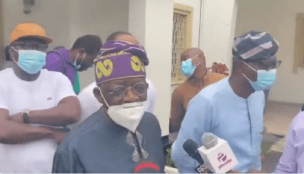 Barely after 72 hours of speculations that former governor of Lagos State, Bola Ahmed Tinubu has traveled out of the country, the national leader of the All Progressives Congress (APC) on Saturday, paid a visit to the state governor at his official resident, Marina to commiserate with the governor over the recent onslaught by hoodlums in the state.