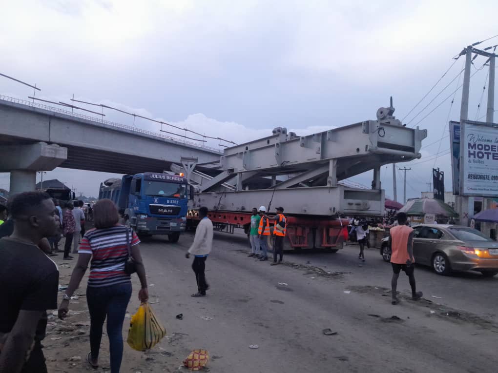 Residents of Rumuosi Community in Obio/Akpor Local Government Area of Rivers State are deeply concerned after a truck carrying heavy equipment damaged one of the flyovers on the Port Harcourt Ring Road project that is currently under construction.